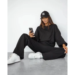 Pridanie recenzie k Čierna dámska súprava s vafľovou štruktúrou - mikina a nohavice (821108)