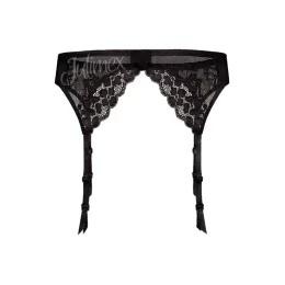 Krajkový podvazkový pás s velkým květinovým motivem.