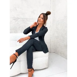 Pridanie recenzie k Černý dámský pruhovaný žebrovaný oblek model 19670104 - Moon