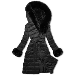 Černý péřový zimní kabát s kožešinovou kapucí model 21248502 - J.STYLE