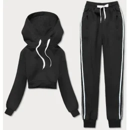 Čierny teplákový komplet s krátkou mikinou (8C67-3)