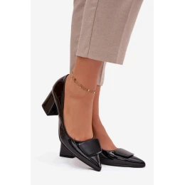 Dámske lodičky z ekokože sú klasickým dizajnom, ktorý spája nadčasovú eleganciu s pohodlím pri nosení. Model na stabilnom stĺpikovom podpätku poskytuje pohodlie počas celého dňa a špicatá špička opticky predlžuje nohy, čím zdôrazňuje ženský charakter. Na prednej strane sa nachádza ozdobný detail. Sú to ideálne lodičky na elegantný styling, skvelé do práce aj na špeciálne príležitosti, ktoré sa dokonale hodia k šatám, sukniam a klasickým nohaviciam.