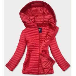 Červená prešívaná bunda s kapucňou (LD-7218)