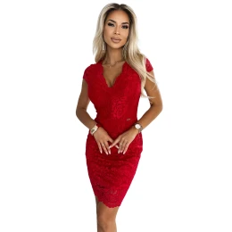 Červené dámské krajkové šaty s krátkými rukávy a výstřihem model 20219308 - numoco