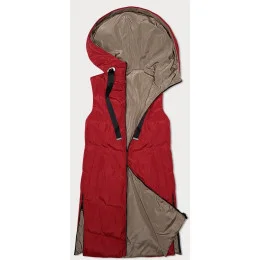 Dámske červeno-béžové obojstranné tričko bez rukávov s kapucňou S'West (B8221-4)