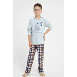 Chlapčenské pyžamo z vysoko kvalitnej bavlny. Tričko s dlhými rukávmi zdobené potlačou. Doplnené dlhými kockovanými nohavicami s pohodlnou gumou v páse