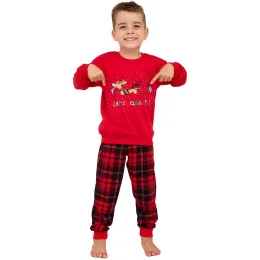 Chlapčenské pyžamo 593/156 Celebrate CORNETTE - vyrobené z kvalitnej bavlny - červené tričko s dlhým rukávom - zdobené potlačou na prednej strane - dlhé kárované nohavice - vianočná kolekcia