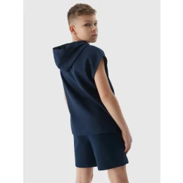 Chlapčenské teplákové šortky sú vyrobené zo stredne hrubého úpletu s gramážou 270 g/m², vďaka čomu sú mäkké a priedušné. Šortky sú bez podšívky, vďaka čomu sú ľahšie a priedušnejšie.