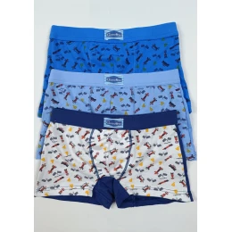 Detské boxerky Gasolino. Veľmi príjemný a elastický materiál na chlapčenské boxerky, krásne a jemné farby, zladené s vytlačenými obrázkami. Horný obvod je z pružnej širšej gumy potiahnutej látkou pre pohodlné nosenie. Obvod nohavíc je voľne ohrnutý, a preto sa nezarezáva. Do vnútornej časti je zakomponovaný bavlnený klin. Farba bude vybraná náhodne alebo môžete farbu uviesť do poznámky. Cena je za jeden kus boxeriek.