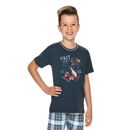 Chlapecké pyžamo 2747 Ivan TARO - vyrobené z vysoce kvalitní a měkké bavlny - tričko je tmavě modré barvy s krátkými rukávy - s barevným potiskem - kárované kraťasy - pohodlná guma v paseMateriálové složení: 100% bavlna