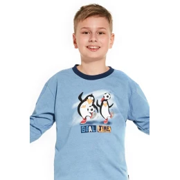 Chlapecké pyžamo 477/136 Goal Cornette - vyrobené z vysoce kvalitní a měkké bavlny - tričko je světle modré barvy s dlouhými rukávy - zdobené barevným potiskem - dlouhé jednobarevné kalhoty mají pohodlnou gumu v pase