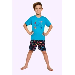 Chlapecké pyžamo 789/99 Carribean Cornette - vyrobené z vysoce kvalitní a měkké bavlny - tyrkysové tričko s krátkými rukávy - zdobené barevným potiskem na přední straně - vzorované kraťasy - pohodlná guma v pase