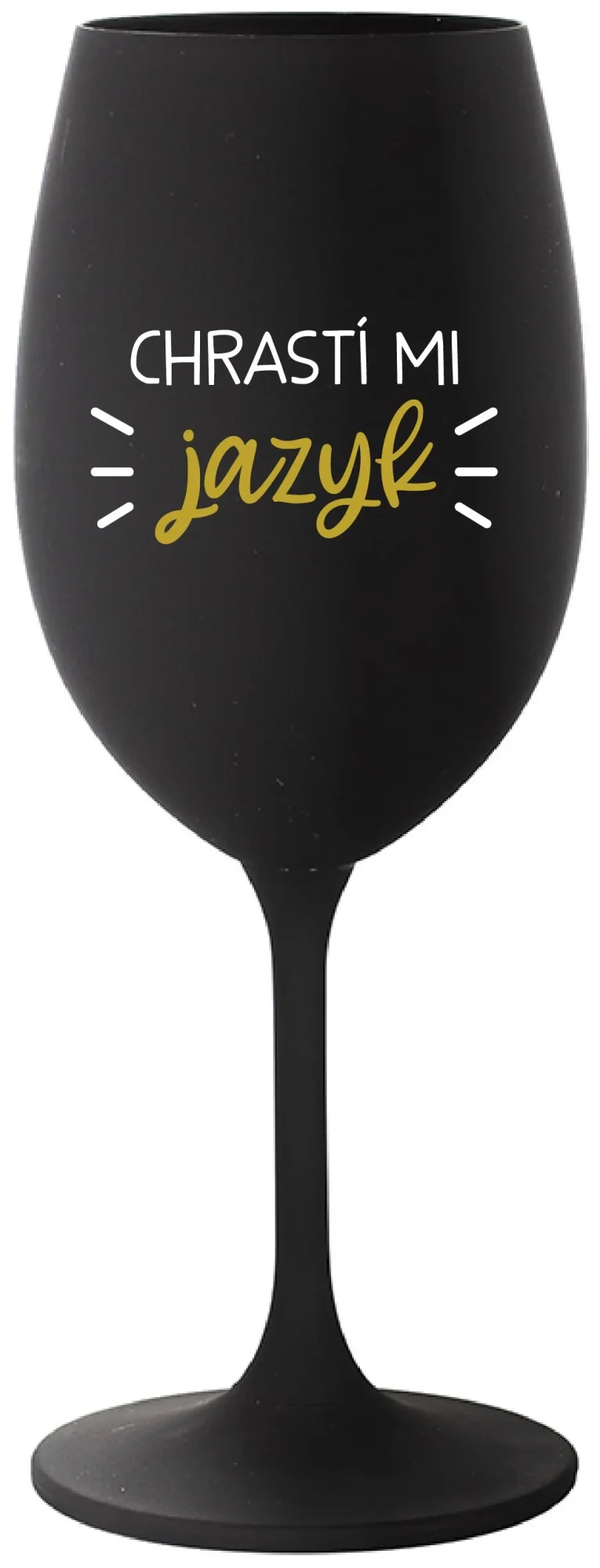 CHRASTÍ MI JAZYK - černá sklenice na víno 350 ml