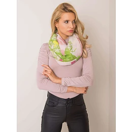 Ciemnoróżowo-zielona chusta z nadrukiem.