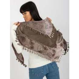 Brązowo-beżowa chusta z ozdobnym wykończeniem .