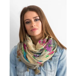Chusta z kwiatowym nadrukiem beżowa.