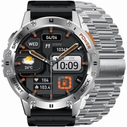 Odolné kovové puzdro, minerálne a tvrdené sklo, 1,43" dotykový displej s rozlíšením 466*466 pixelov, funkcia hovoru, ovládanie hudobného prehrávača, viacero športových režimov, výkonná batéria, baterka.