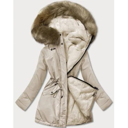 Teplá dámska zimná obojstranná bunda béžová (w610)