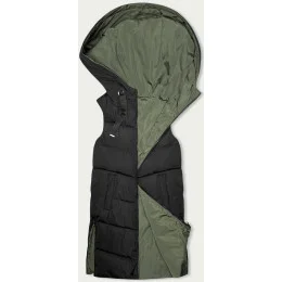 Čierna a khaki dlhá dámska obojstranná vesta (B8248-1)