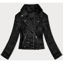 Čierna dámska bunda ramoneska s golierom J Style (11Z8109)