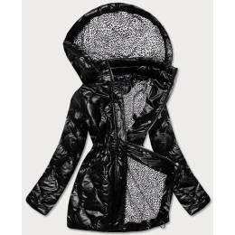 Čierna dámska bunda s ozdobnou podšívkou (BH2182)