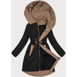 Čierna dámska bunda so šnúrkou v páse S'West (B8352-1)
