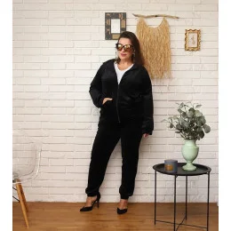 Čierna dámska tepláková súprava plus size s kapucňou na zips (8216)