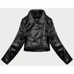 Čierna kožená bunda s klopami J Style (11Z8128)