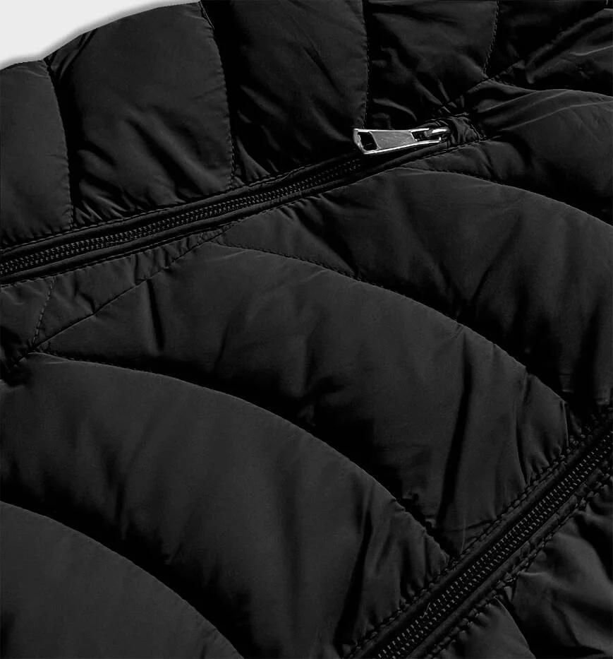 Čierna krátka obojstranná dámska zimná bunda (2M-21507)