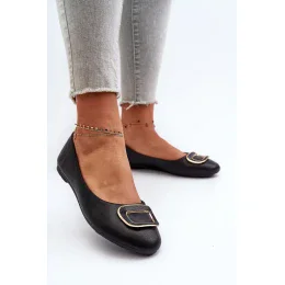 Čierne kožené baleríny s dekoráciou Enicoria
