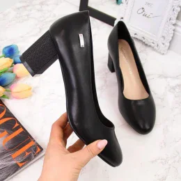 Čierne lodičky Sergio Leone W SK314A s ozdobným stĺpikom