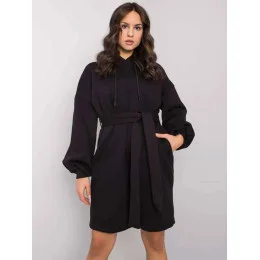 Čierne nadrozmerné teplákové šaty s opaskom (7253)