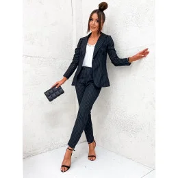 Čierny dámsky prúžkovaný oblek (8237)