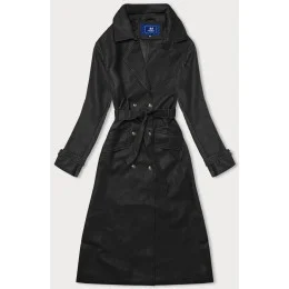 Čierny dvojradový klasický dámsky kabát z ekologickej kože AnnGissy (AG6-30)