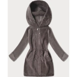 Čokoládová bunda z alpaky s kapucňou (W214#)
