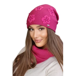 Wdzięk zawdzięcza kwiatowym aplikacjom z zamysłem rozmieszczonym na całości produktu. Subtelności nadaje o ton jaśniejszej kolorystyka, połysk zaś srebrne cyrkonie, jak i firmowy znaczek. Czapka wykonana z wysokiej jakości przędzy, miłej oraz przyjemnej w dotyku. Świetnie dopełni każdą jesienno-zimową stylizację, zapewniając komfort użytkowania. Dla idealnego ułożenia na głowie tył został szczepiony zaszewkami. NAILA dostępna jest w bogatej palecie kolorów. Skład: 50% akryl, 30% wełna, 20% poliamid