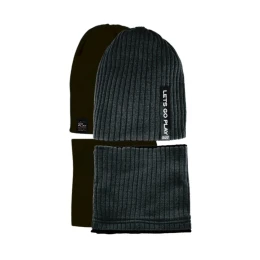 Oboustranná chlapecká souprava: čepice s kšiltem. Čepice mírně prodloužená, s nášivkami na obou stranách. Hladký kšilt, rovněž oboustranný