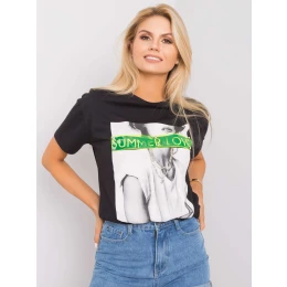 Čierne bavlnené tričko s aplikáciami .