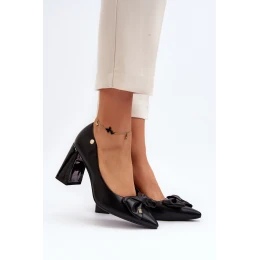 Czółenka Na Słupku Z Kokardą Czarne Ariemessa