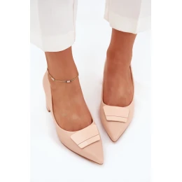 Czółenka Na Słupku Z Ozdobą Beżowe Celira