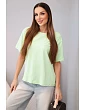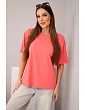 Táto dámska blúzka voľného strihu je skvelou voľbou pre ženy, ktoré si cenia pohodlie a nadčasový štýl. Klasický strih s krátkymi rukávmi a okrúhlym výstrihom zaručuje, že tento model je ideálny na každodenné outfity aj ležérnejšie kombinácie. Je to ideálna základná blúzka pre ženy, ktorú možno ľahko kombinovať s džínsami, šortkami, legínami alebo sukňou.