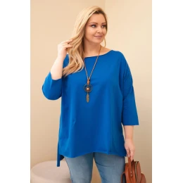 Dámská bavlněná blůza Plus Size asymetrická s náhrdelníkem chabrová