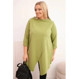 Dámska bavlnená blúzka s asymetrickými rukávmi v olivovej farbe