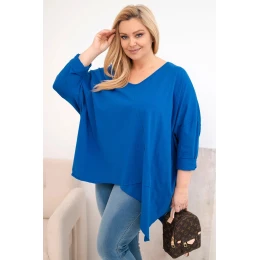 Dámská bavlněná blůza Plus Size s asymetrickým lemem a výstřihem do V chabrová