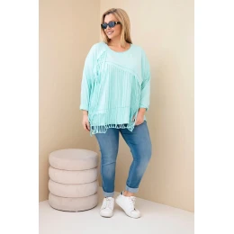 Dámská bavlněná blůza Plus Size s třásněmi mátová