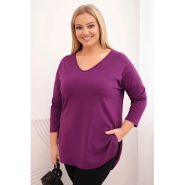Dámská bavlněná blůza Plus Size s výstřihem do V a ohrnutým rukávem tmavě fialová
