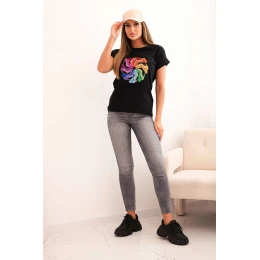 Dámská bavlněná blůza s krátkým rukávem a barevným potiskem černá
