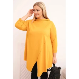 Dámska bavlnená blúzka s asymetrickými rukávmi v horčicovej farbe