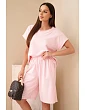Dámský komplet tričko a kraťasy z bavlny s krátkým rukávem je ideální volbou pro ženy, které si cení pohodlí a módního, casual stylu. Sada se skládá z volného trička s krátkým rukávem a pohodlných kraťasů s elastickým pásem, což zajišťuje maximální volnost pohybu a skvělé přizpůsobení postavě. Vyrobený z vysoce kvalitního materiálu s převahou bavlny, komplet je příjemný na dotek a prodyšný, díky čemuž se hodí jak do domácího prostředí, tak na každodenní výlety nebo letní procházky. Tričko s jednoduchým střihem se krásně upraví na postavě a kraťasy s gumou v pase zaručují pohodlí po celý den. Minimalistický design dělá z tohoto kompletu nadčasový kousek, který se snadno stylizuje – můžete ho nosit společně nebo kombinovat jednotlivé části s ostatním oblečením. Italská výroba zajišťuje vysokou kvalitu provedení a pečlivost o detaily.
