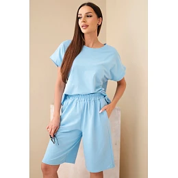 Dámska bavlnená blúzka s krátkym rukávom a šortky s elastickým pásom modré